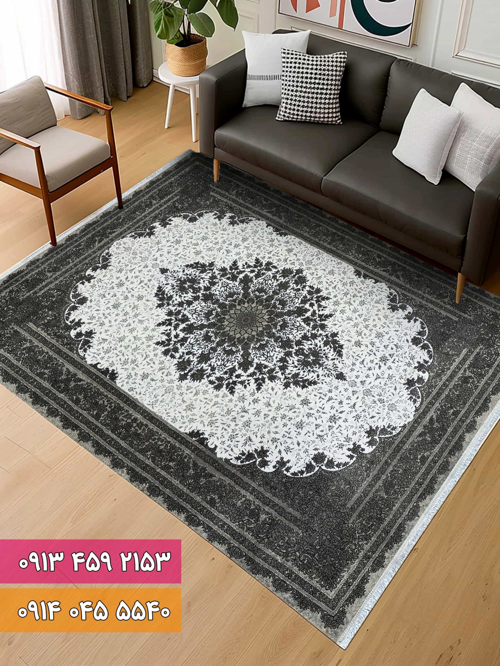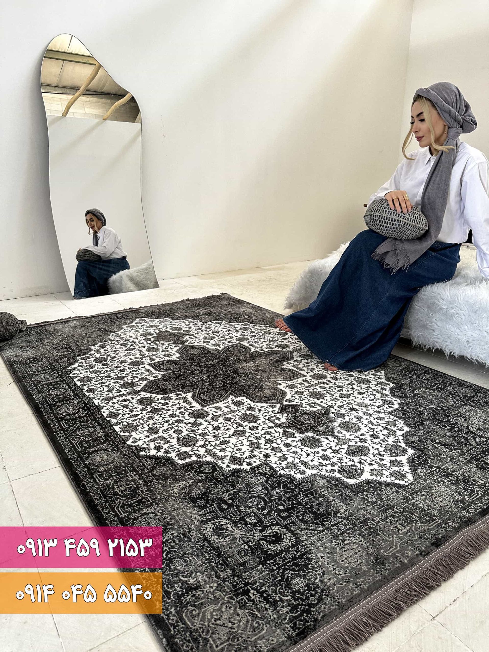 - 3.34 فرش کد 73070ZW زغالی سفید