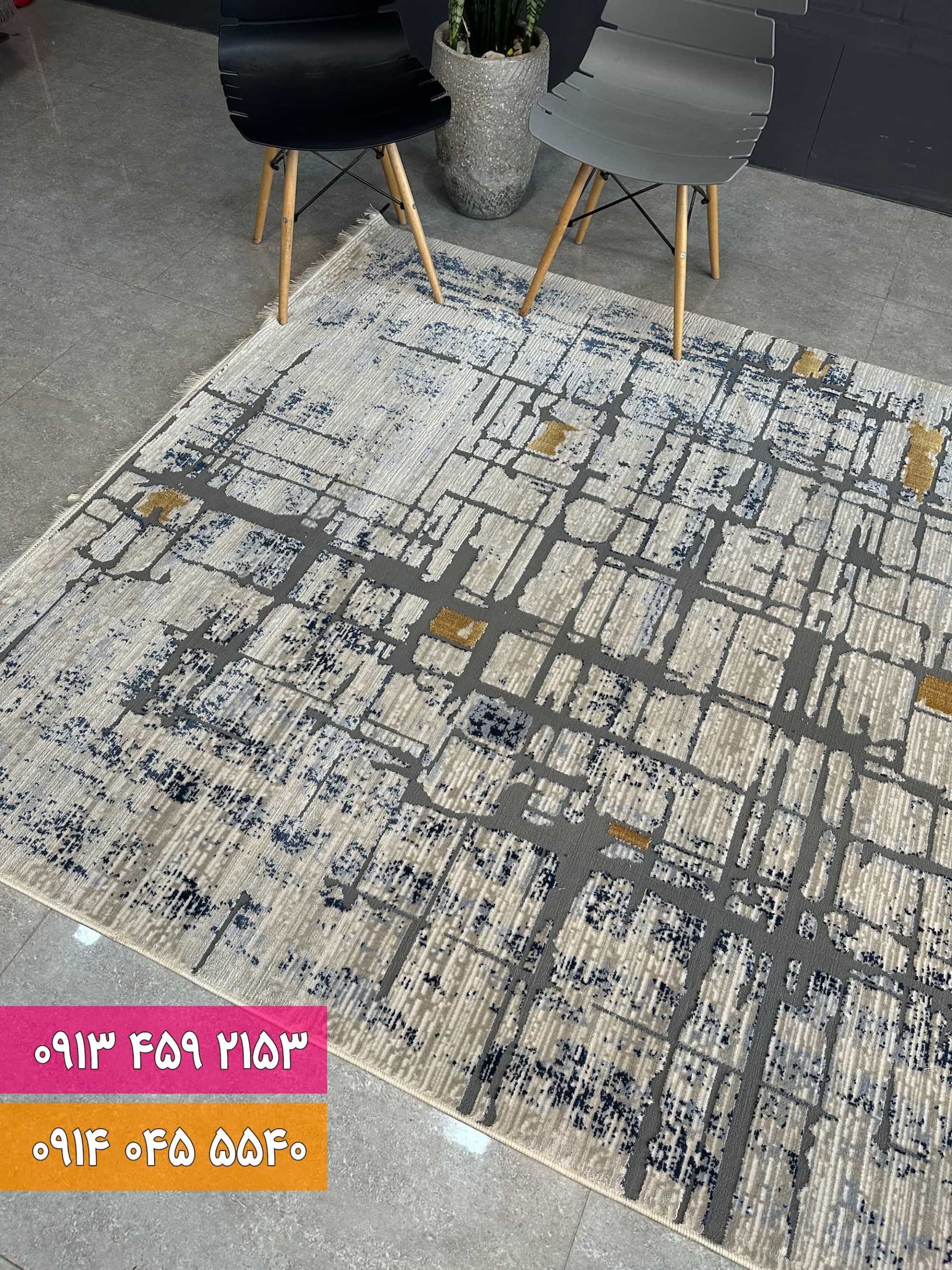 فرش فانتزی سرمه ای بژ