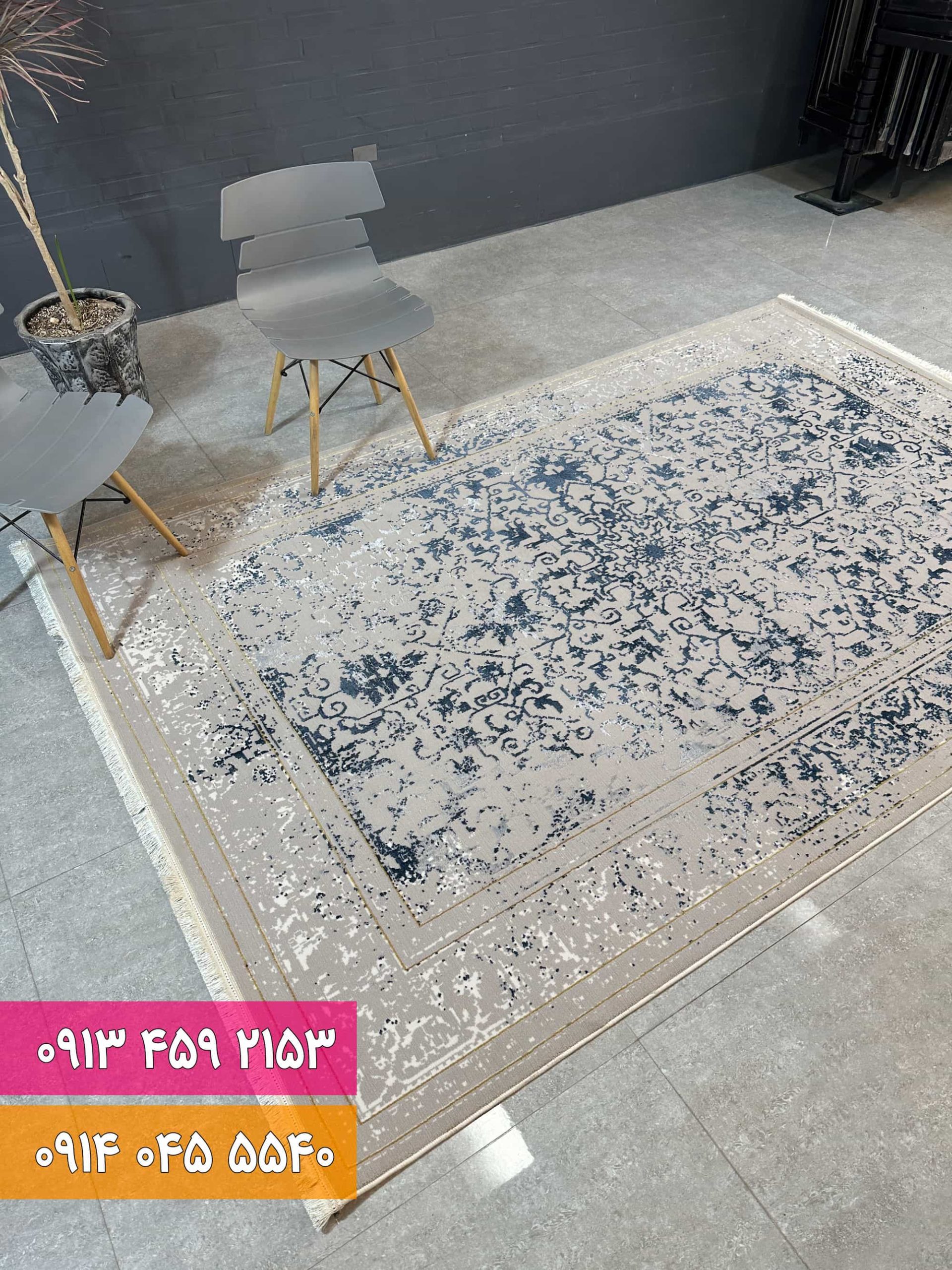 فرش فانتزی سرمه ای بژ