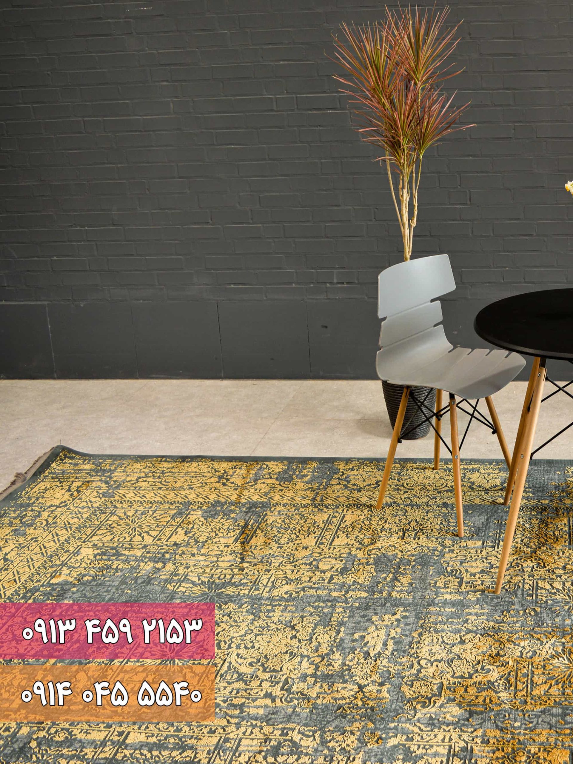 فرش اکرلیک زغالی طلایی