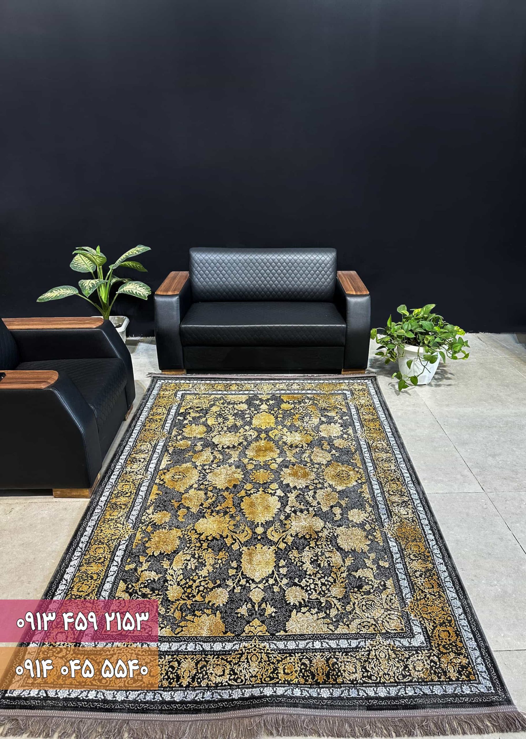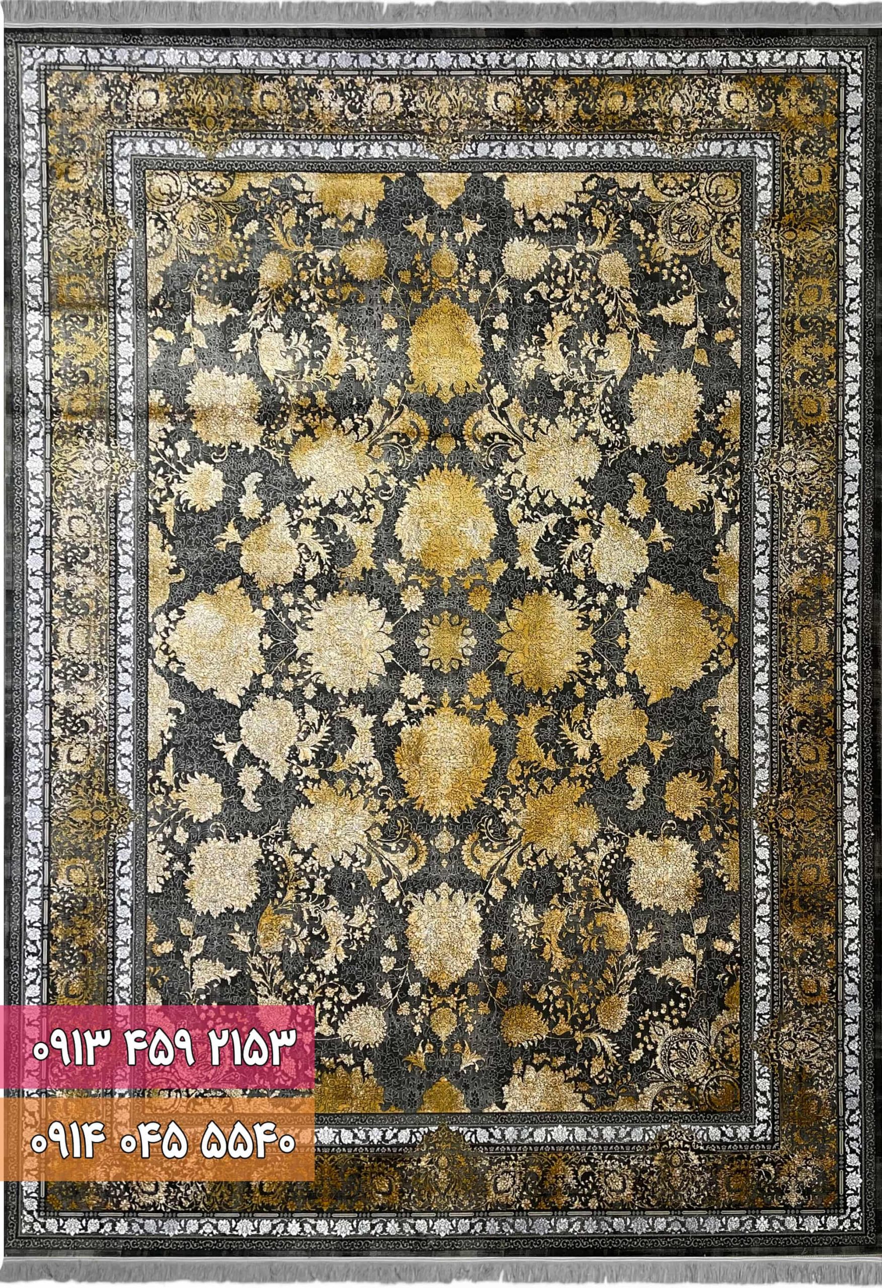 فرش اکرلیک زغالی طلایی