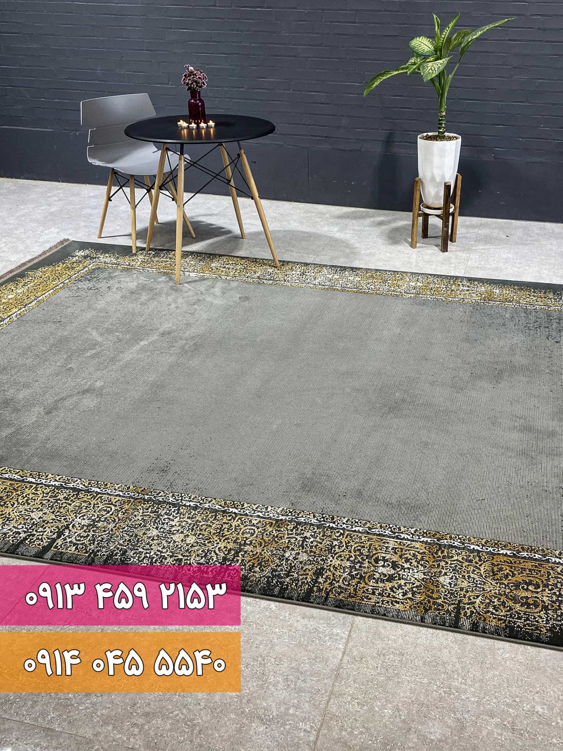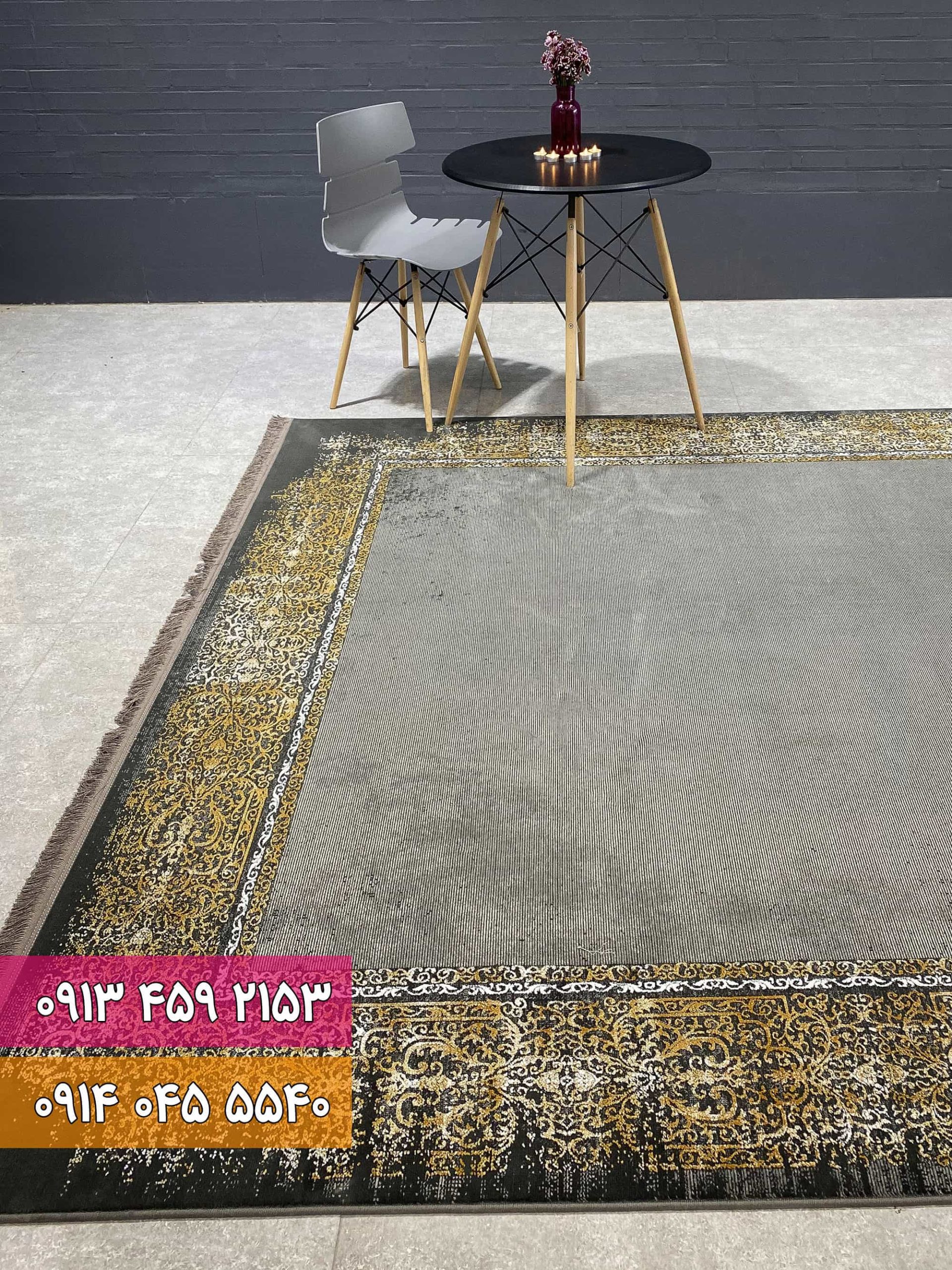 فرش اکرلیک زغالی طلایی
