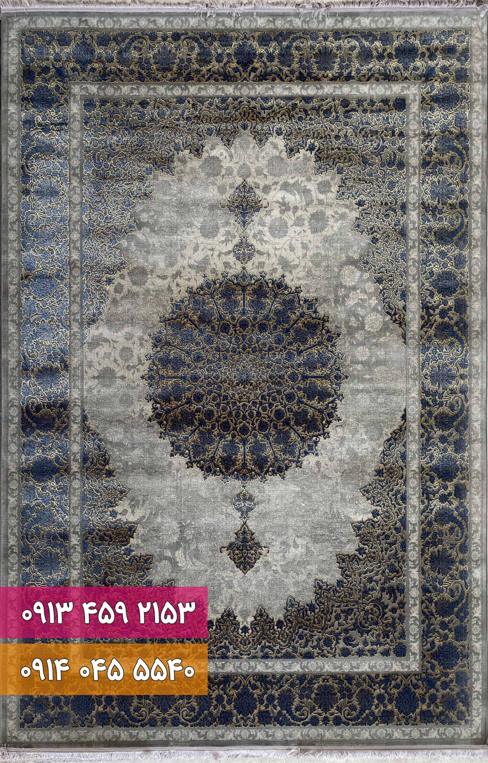 فرش زمینه آبی طوسی