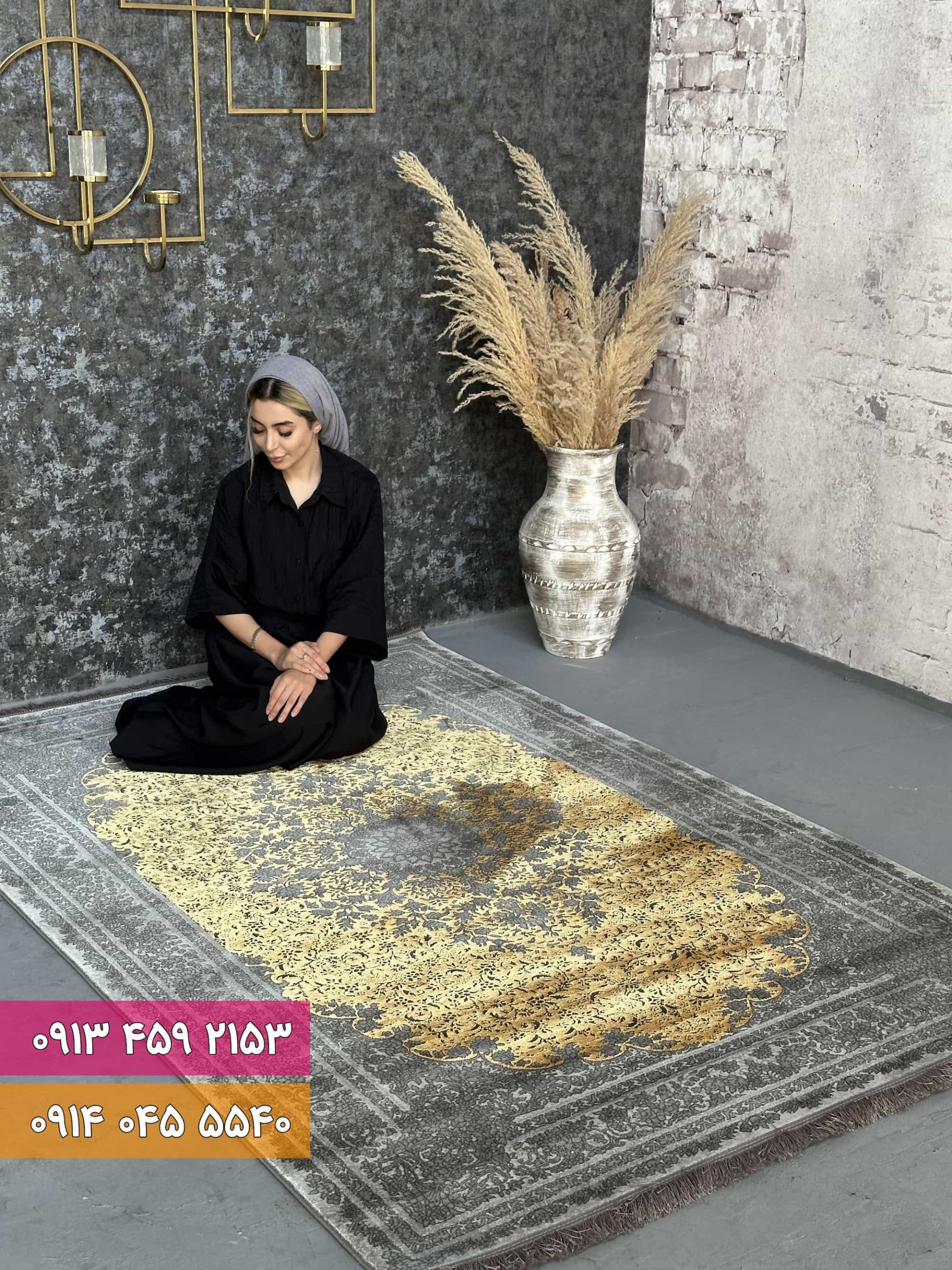 فرش با نخ اکرلیک طلایی