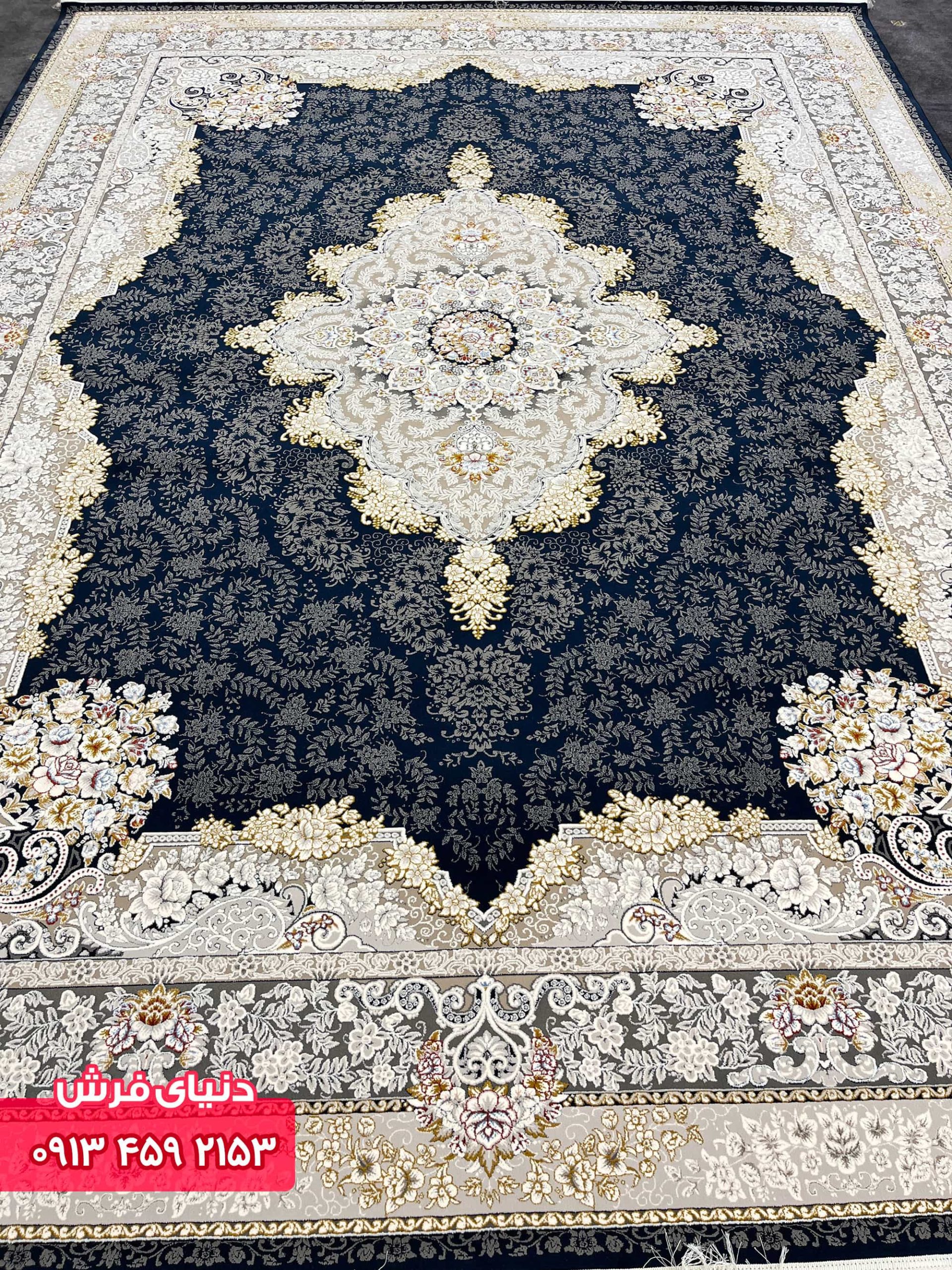 این مجموعه با عرضه بهترین محصولات بدون حضور واسطه قیمت تولیدی فرشها را در اختیار شما قرار میدهد. به همین دلیل جای نگرانی نیست. شما میتوانید فرش 1200 شانه تراکم 3600، را به نسبت بازار با قیمت مناسبتری خریداری نمایید. امکان خرید از فروشگاه دنیای فرش به صورت حضوری و آنلاین فراهم است. شما میتوانید به هر صورت که مایل به خرید هستید اقدام نمایید، فرش کد 9016 سرمه ای گلبرجسته.