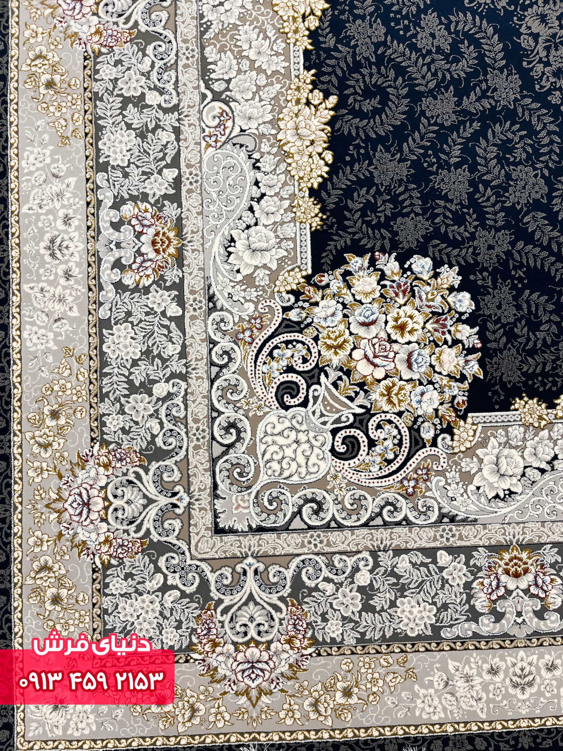فرش کد 9016 زمینه سرمه ای گلبرجسته