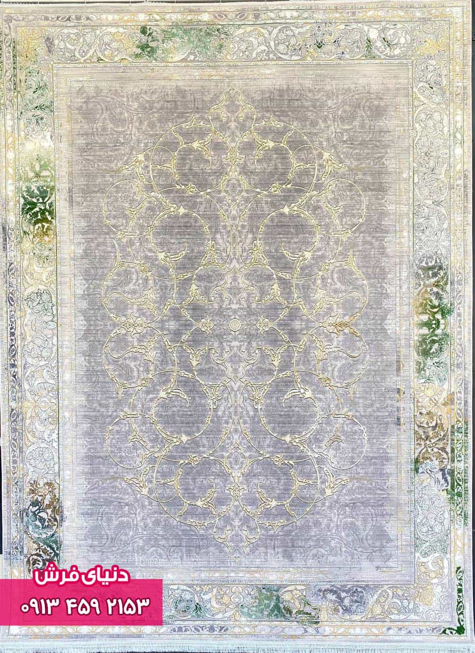 - 3.11 فرش افشان کد 9024 نقره ای گل برجسته